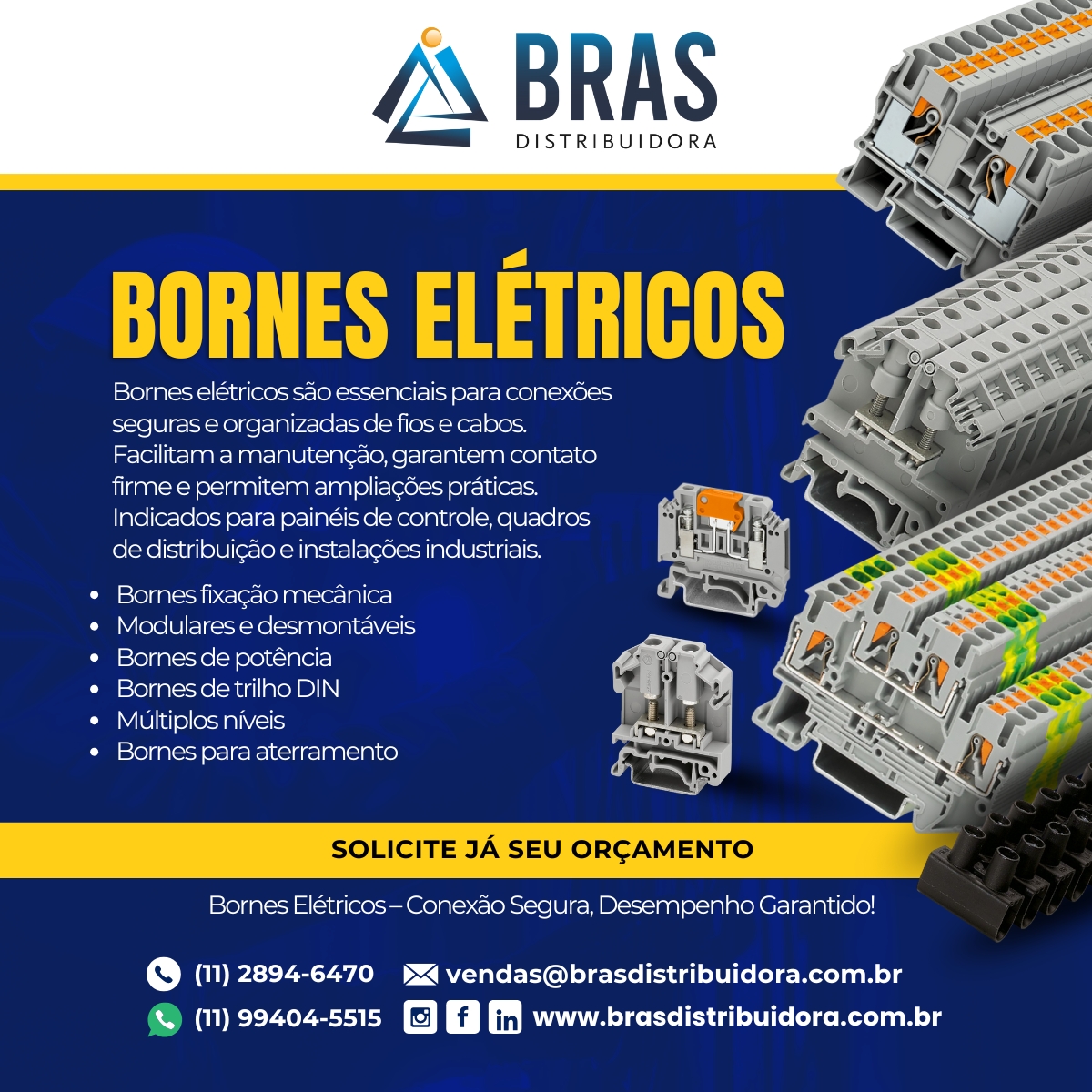 Os bornes elétricos são indispensáveis para qualquer instalação segura, organizada e eficiente. Com diversos modelos disponíveis, eles se adaptam a diferentes aplicações, oferecendo confiabilidade e praticidade.