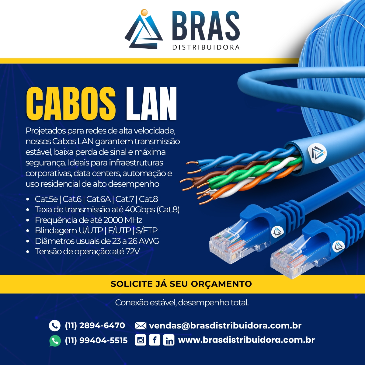 Para quem quer investir em cabos LAN seja para seu projeto residencial, corporativo ou industrial, conte com a Bras distribuidora. Oferecemos soluções eficientes com garantia e suporte técnico especializado.