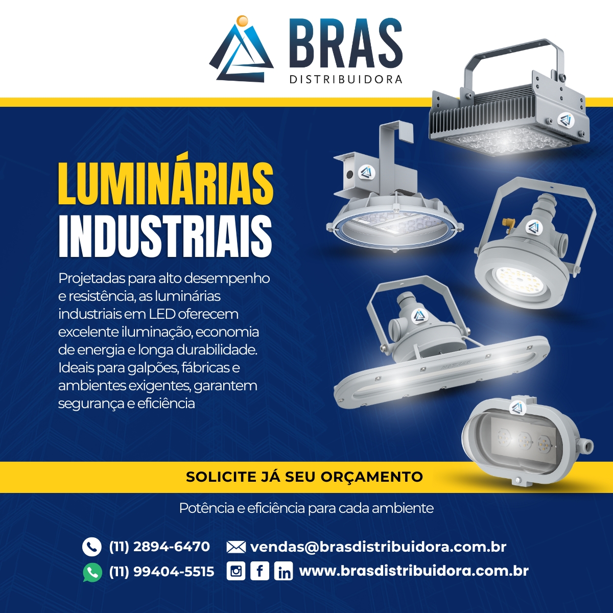 Existem diferentes tipos de ramos industriais, seja para o ramo logístico, alimentício ou outros, pois qualquer instalação de grande porte, a iluminação é fundamental. Com a Bras Distribuidora, você garante luminárias industriais de qualidade, que são adaptáveis e podem trazer resultados com muito mais excelência.