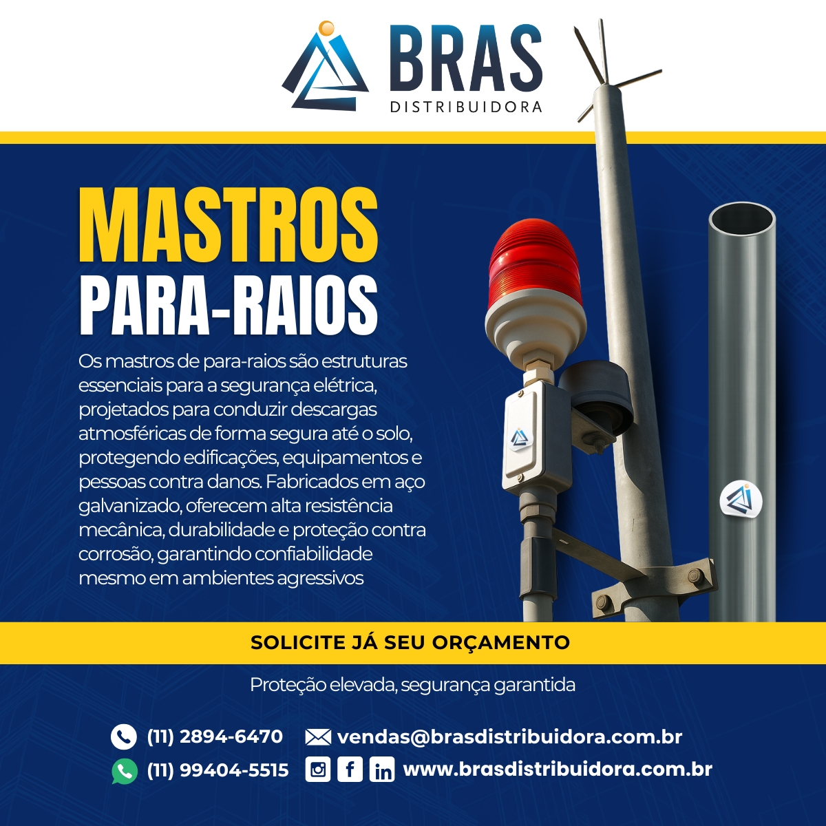 Dessa forma, se você está buscando por mastro para para-raio, entre em contato hoje mesmo com os profissionais da empresa Bras Distribuidora, que realiza um atendimento personalizado e entende exatamente o que você precisa, levando em conta suas necessidades e a instalação elétrica adequada para o seu tipo de ambiente.