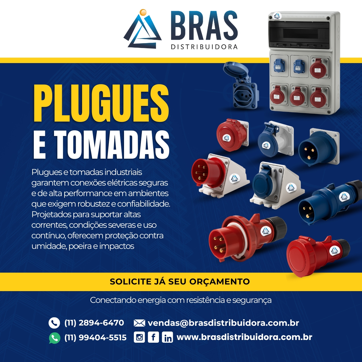 Uma tomada blindada se destaca no ramo de eletricidade, sendo parte fundamental de qualquer tipo de estrutura, seja industrial, residencial e comercial. Com isso, na Bras Distribuidora, você evita contratempos e conta com profissionais especializados que vão trazer exatamente o que você precisa.